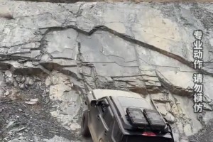 越野车从陡峭的石壁上硬碾过去,全靠车子性能过硬!!