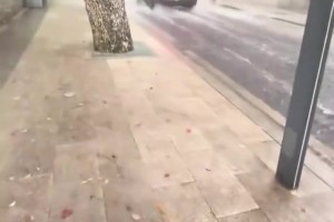 女子雨中路边等车,被路过的车辆溅一身水!!