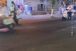 男生未戴头盔遇上交警,准备掉头结果发生车祸!!